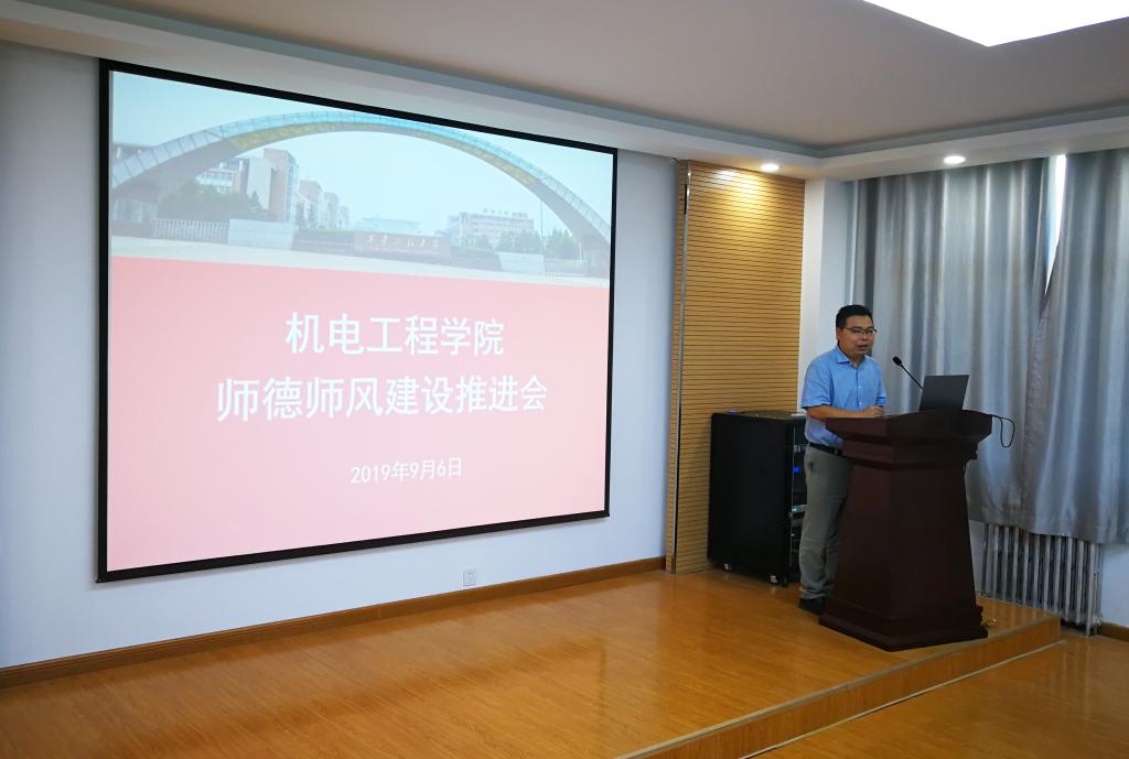 为贯彻落实公司党委关于进一步加强教风学风建设专项行动的部署要求,在全国第35个教师节来临之际,2019年9月6日下午,伟德国际victor1946在临潼校区笃行楼学术报告厅举办以“弘扬高尚师德、潜心立德树人”为主题的师德师风建设推进会,公司党委副书记赵小峰出席会议并讲话,机电公司全体教职工参加会议,机电公司党委书记王鸣媛主持会议。
