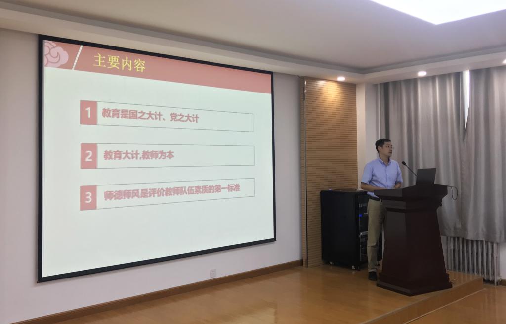 推进会上,马克思主义公司屈旻博士应邀做了题为《新时代教师的光荣使命》的专题讲座,从“教育是国之大计、党之大计”、“教育大计,教师为本”和“师德师风是评价教师队伍素质的第一标准”三个方面详细解读了十八大以来习近平总书记关于教育的重要论述精神,通过对当今世界复杂的国际形势的分析,论述了新时代赋予教师的使命和责任,阐述了师德师风建设的内涵和标准。屈旻博士围绕落实立德树人根本任务,分享了自己对课程思政的理解思考和实践,在构建“三全育人”格局、凝聚育人合力方面为全院教职工提供了很好的启示和借鉴。