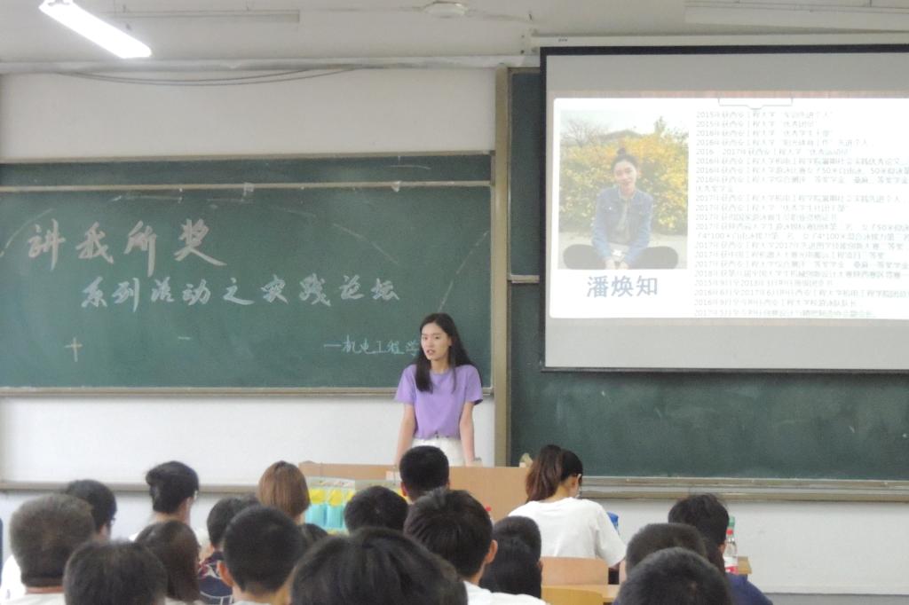 5月29日晚,伟德国际victor1946成功举办以“凝聚青春智慧,聆听榜样声音”为主题的“讲我所奖”经验分享系列活动。活动由“学霸讲堂”、“实践论坛”两个子活动构成,分别在临潼校区A202、A204教室同时进行。公司17级辅导员黄超、公司员工会主席郭星、优秀员工代表魏孟、李平、罗文量、潘焕知、郭安琪等十位同学及来自17级的200余名同学出席参与了本次活动。