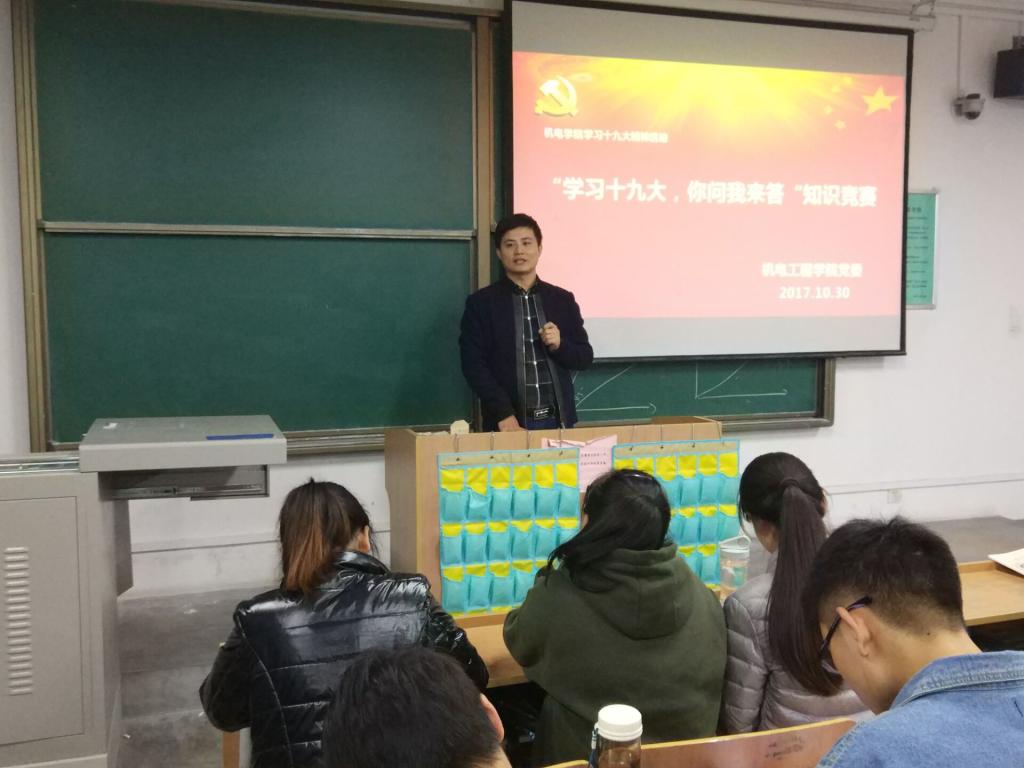 为深入宣传学习贯彻党的十九大精神,深入推进公司“两学一做”学习教育常态化、制度化,10月30日,机电公司党委在300余名师生党员中开展了“学习十九大,你问我来答”知识竞赛。