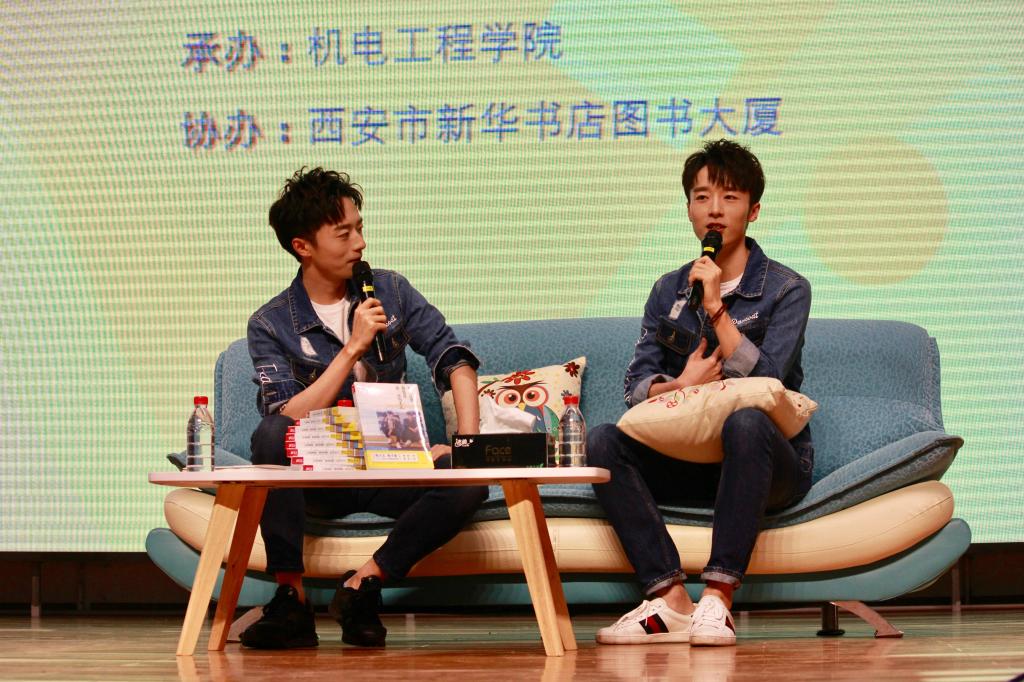 9月23日,由共青团伟德国际victor1946委员会、北京磨铁图书主办,机电公司承办,西安市新华书店图书大厦协办的以“燕园文豪话成长,书香校园品人生”为主题的第十届“书香工程大”系列活动之作家分享交流会在伟德国际victor1946临潼校区老员工活动中心隆重举行,本次“书香工程大”活动特邀了中国90后新锐青年作家,北大最帅双胞胎兄弟苑子文和苑子豪来到现场做了关于校园和成长的访谈。校团委书记王晓先、机电公司党委副书记魏哲及全体辅导员、1000余名同学以及校外慕名而来的百余名粉丝参加了活动,活动由机电公司团总支书记刘沫含主持。