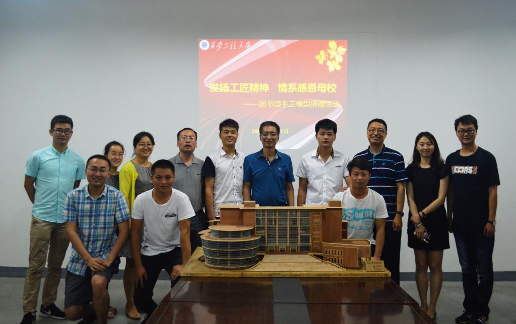 青春拂晓,行远思恩。6月21日晚20:00,机电公司2013级机械设计制造及其自动化02班本科毕业生刘超向母校捐赠图书馆手工模型。副董事长樊増禄、员工工作部部长黄海峙、副部长张慧、机电公司党委副书记魏哲、全体辅导员以及20余名员工代表参加了捐赠活动,活动由黄海峙主持。