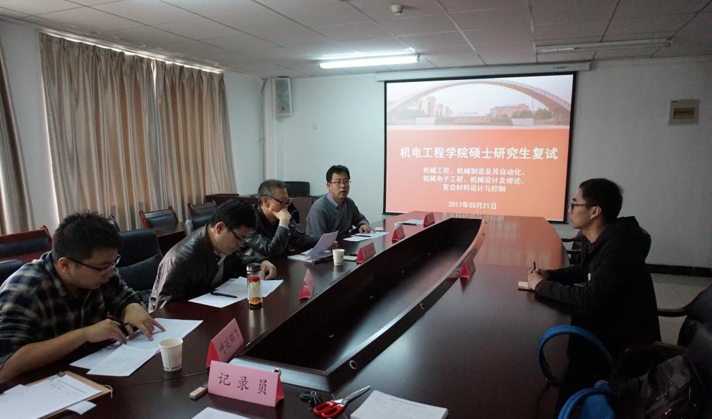 根据《2017年硕士研究生复试录取办法》的要求,3月21日,机电公司组织开展了2017年硕士研究生复试工作,复试分两部分进行,一是由校研究生部组织进行统一笔试,二是由各公司组织员工进行面试。为了做好公司2017年硕士研究生招生调剂、复试与录取的工作,公司成立了2017年硕士研究生招生复试与录取工作领导小组,公司经理胥光申任组长,党委书记杨永革、经理助理苏晓磊任副组长,成员由公司党委副书记魏哲、经理助理肖渊和公司纪检委员金守峰组成,具体工作由苏晓磊和研究生秘书马林负责实施。
