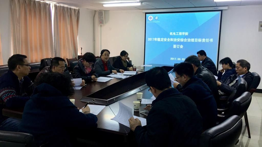 3月22日,机电公司召开2017年校园稳定安全和综合治理工作目标管理责任书签订会,部署机电公司2017年稳定安全和综合治理工作。机电公司党委书记杨永革、经理胥光申、党委副书记魏哲以及各教研室主任参加了会议,会议由杨永革主持。