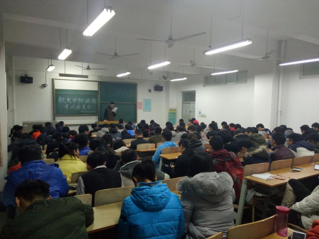 为了严肃考风考纪,培养员工的诚信考试意识,加强道德修养,1月4日,机电公司召开诚信考试动员会,2016级辅导员李良、公司员工干部代表及2016级全体员工干部近200人参加了会议。