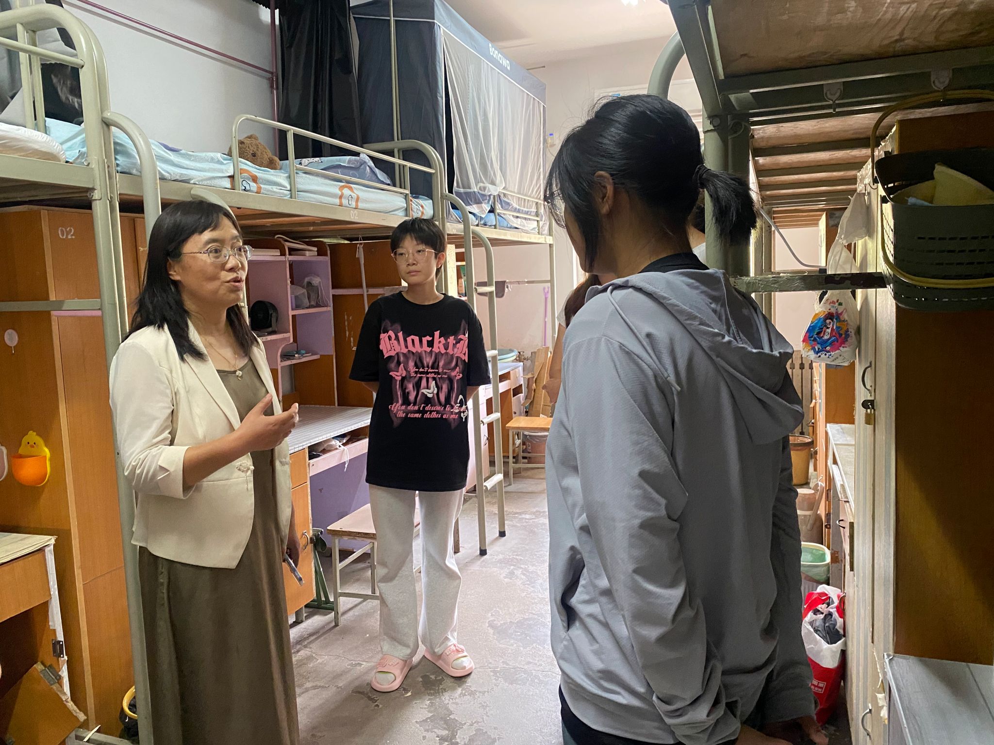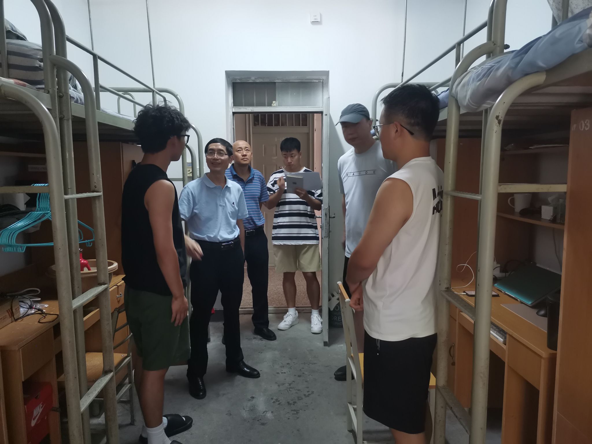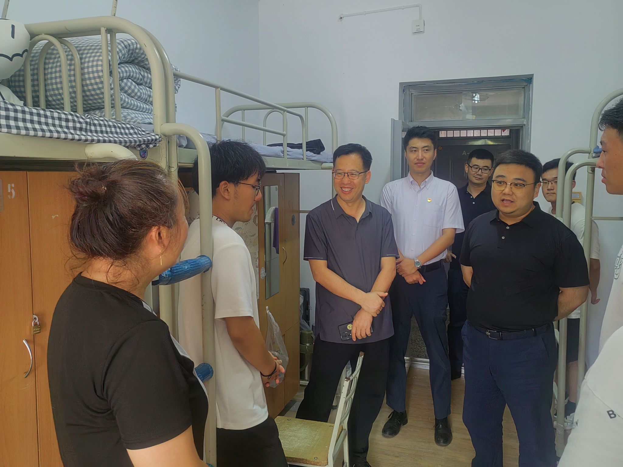 新生家长见面会后,公司全体领导与辅导员前往本硕新生宿舍,走访问候新生,了解员工基本情况,关心员工衣食住行。公司领导鼓励新生积极适应新环境新生活,刻苦学习,提高身体素质,德智体美劳全面发展,叮嘱新生有需求积极反馈,并请家长们放心,公司将以最大努力为新生提供良好的学习和生活环境,助力员工成长成才。