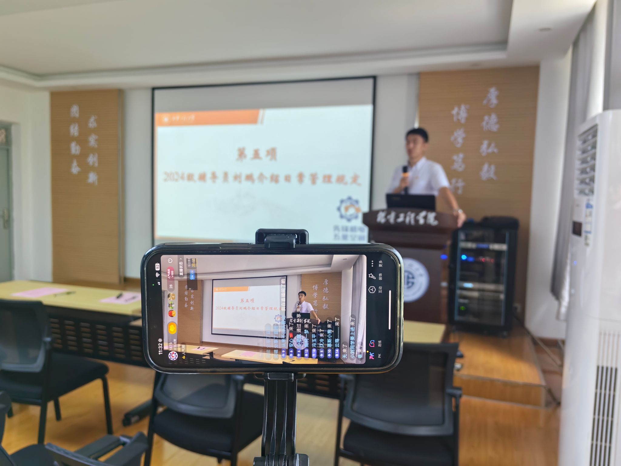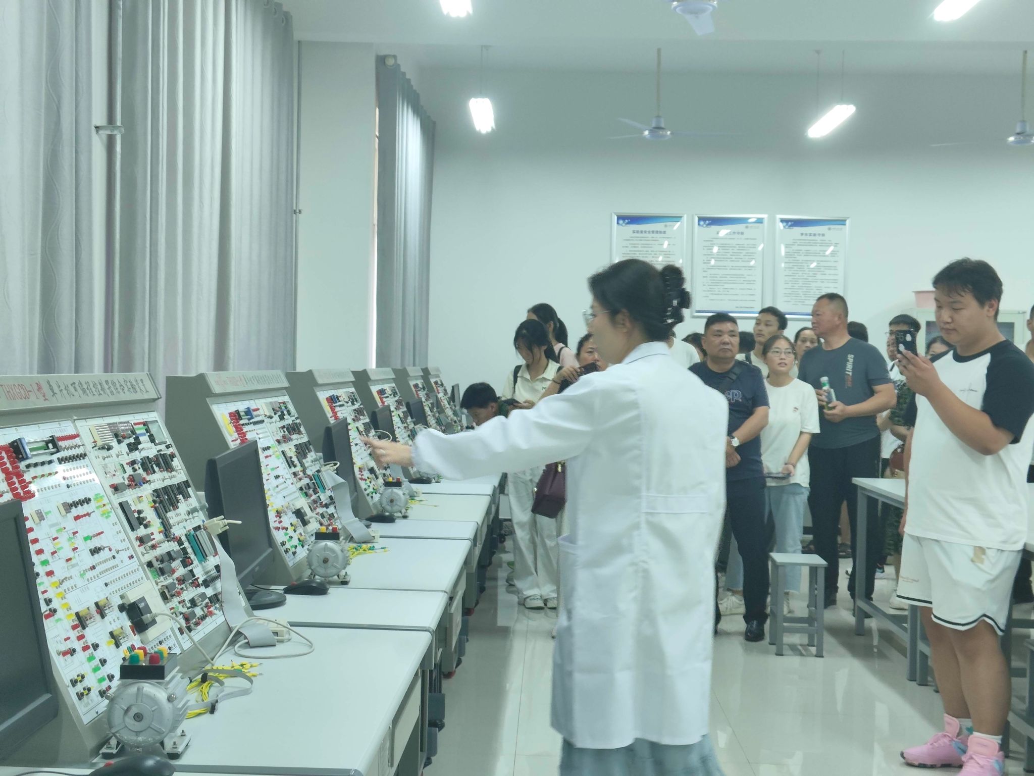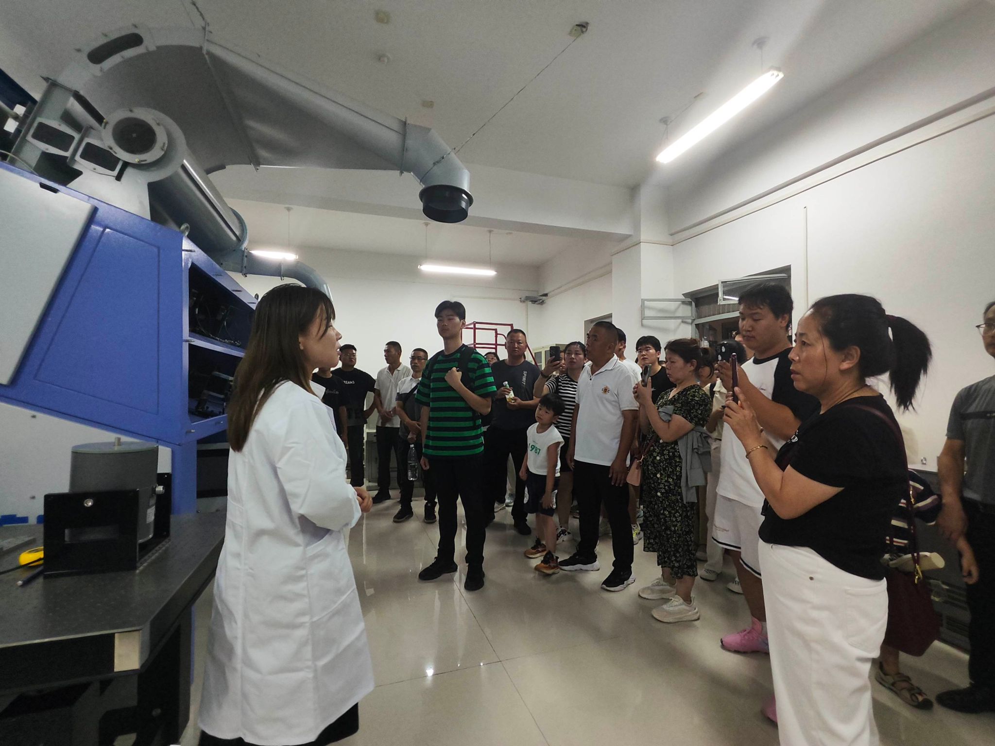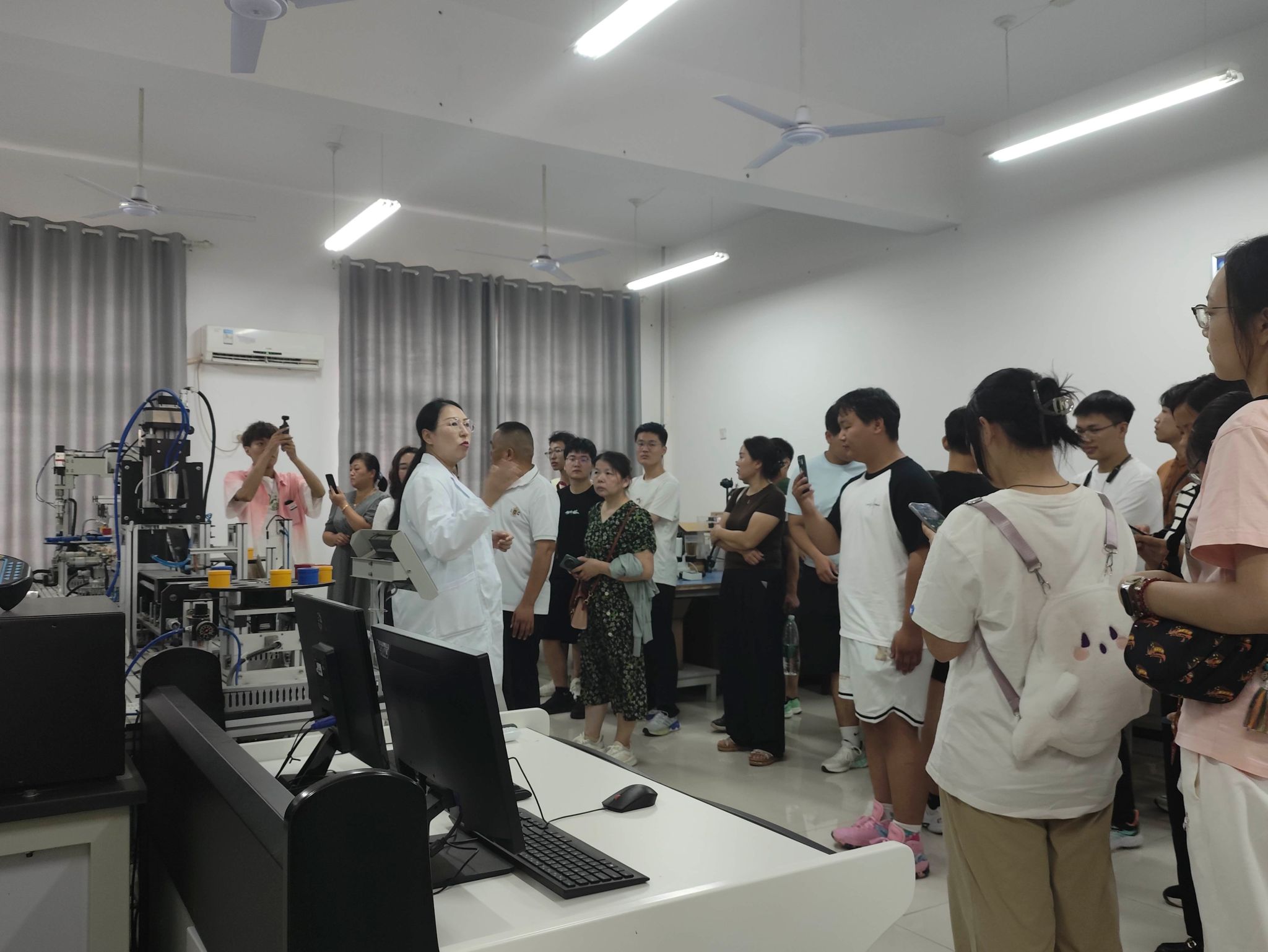 第二环节,公司以网络直播的形式线上线下同步开展活动。郭方义详细介绍了公司资助政策及实施办法,并就工作中遇到特殊情况进行了说明。刘鹏作为2024级新生辅导员,用“独立、包容、自律、奉献、交流”5个关键词,对员工日常管理规定和家长关心关切的问题做了细致的讲解和全面解答。实验中心的各位老师带领家长和新生参观了智能制造、机电综合、机械创新、电液控制、纺织机械等7个机械专业实验室,向家长介绍了实验设备在本科生实践环节的具体运用,此项安排让家长们感受到公司对员工实践教学的重视,也得到家长们的一致好评。