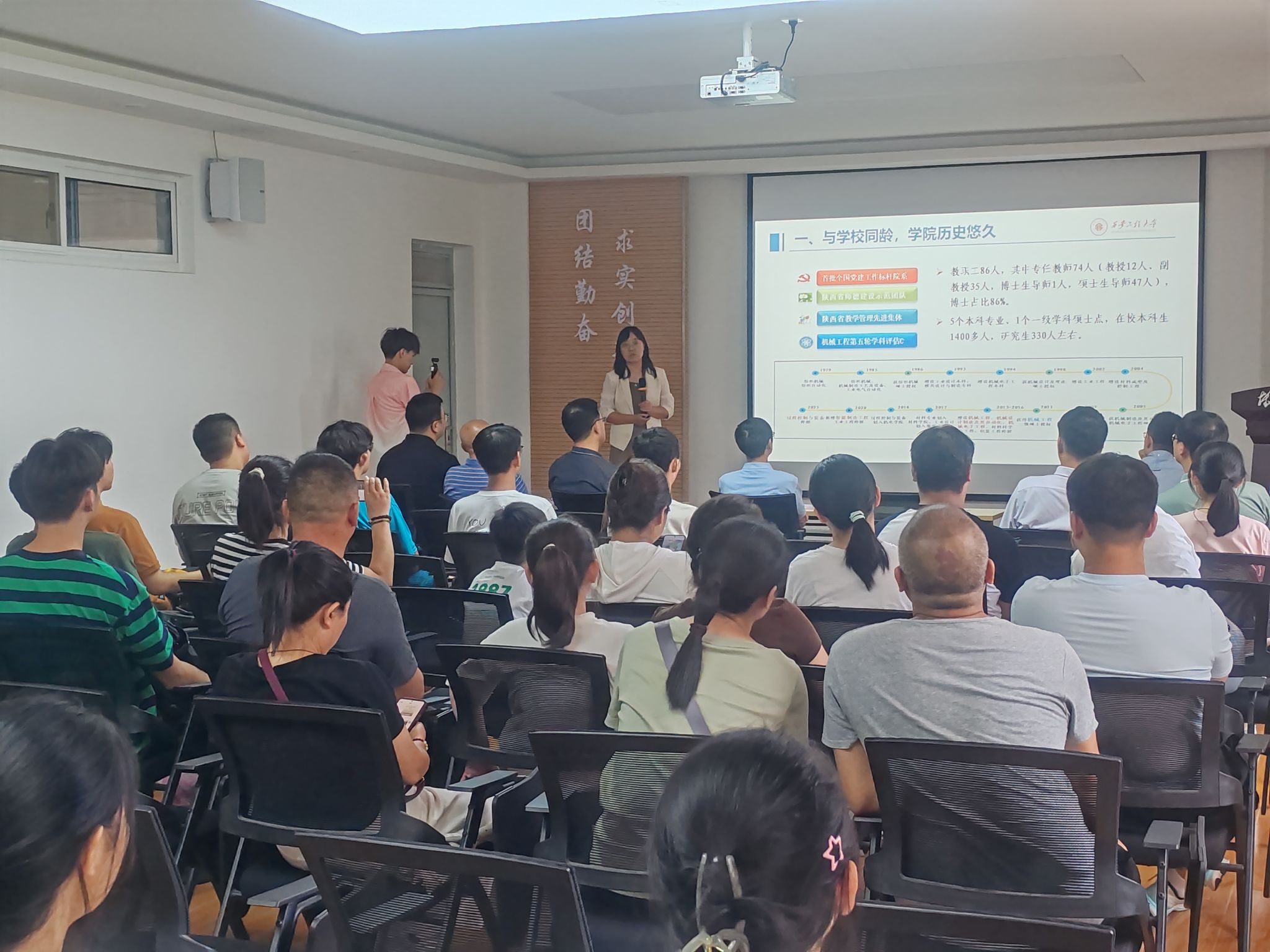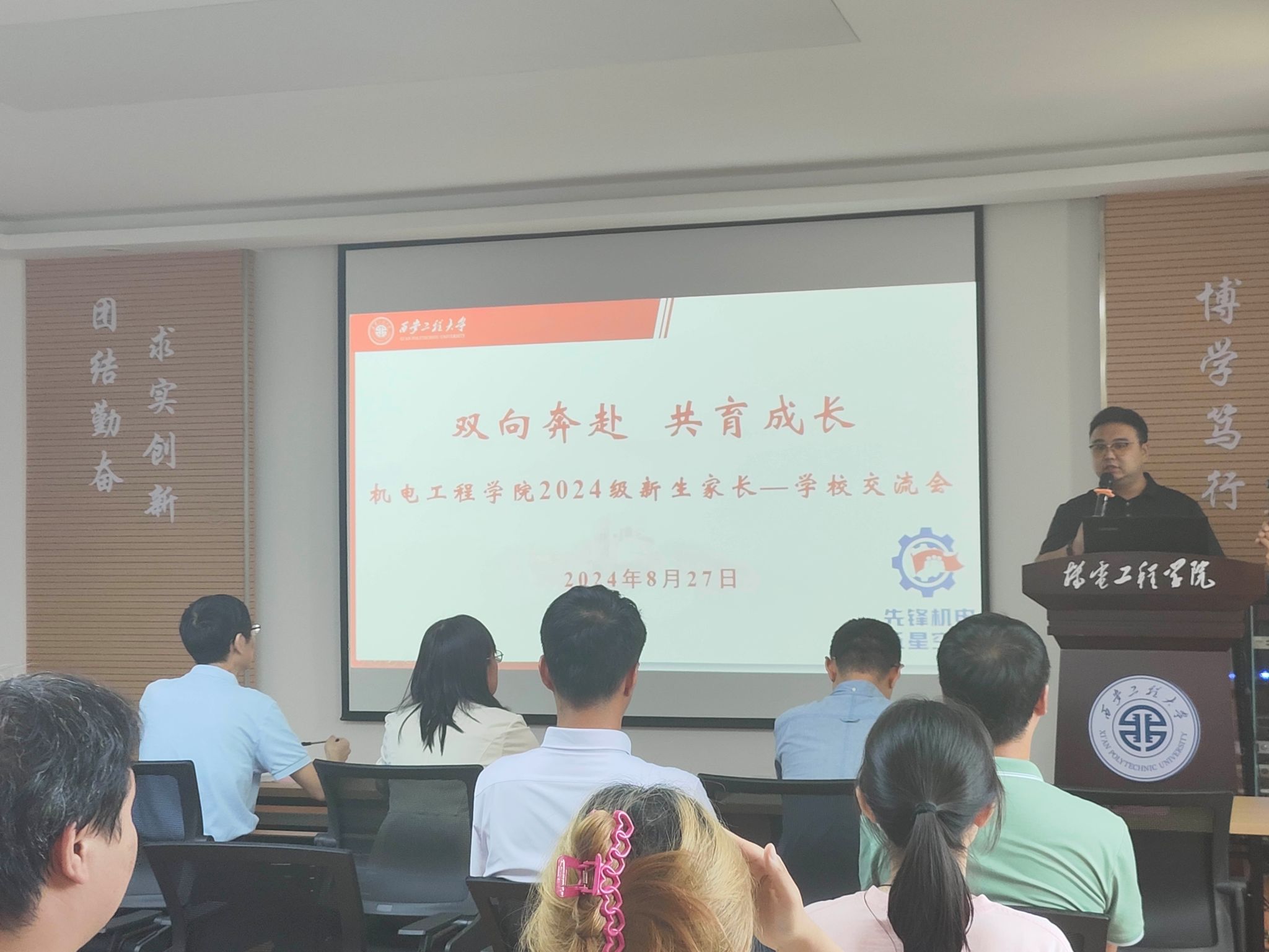 第一环节,阚佩代表公司党委对2024级新生和家长的到来表示热烈欢迎,并以一名老机电人的身份表达了希望,希望家长和公司加强联系,帮助新生尽快转变角色、做好大学规划、树立鸿鹄之志,希望所有员工做到不负时代、不负韶华。赵小惠系统介绍了公司历史、专业发展、团队队伍、人才培养、学科竞赛、校园文化和杰出员工,以及公司优势特色和服务行业地方情况,希望新生始终保持刻苦学习的态度并规划好老员工活,希望家长持续做好对员工学习生活心理各方面的关注。杨鹏程从一名青年教师的角度进行了经验分享,希望新生们始终不能放松学习,要注重提升核心竞争力,做到综合发展,快速成长;希望家长及时鼓励并帮助员工尽快适应老员工活,要建立自主意识并主动学习,进而从容应对压力和挑战。