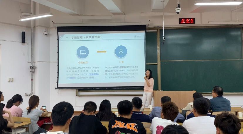 党琳宁从学籍管理、考试管理、课堂学习文明公约等三方面介绍了公司学籍管理规定,她以现实案例为戒,提醒全体新生要增强纪律观念,以德修身,勤学不辍。