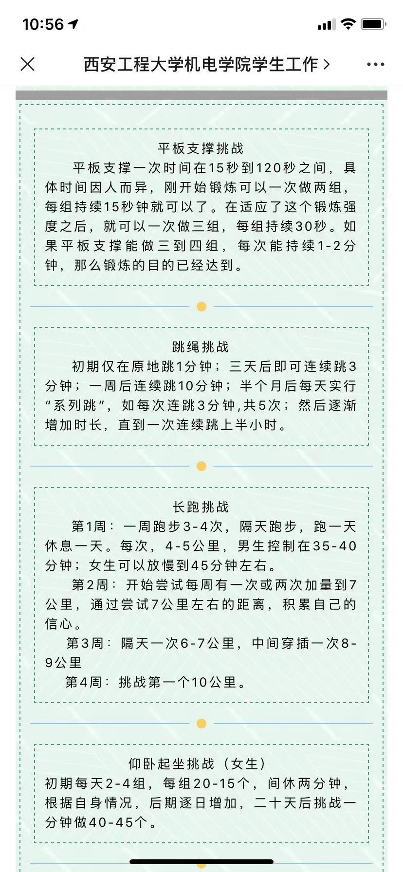 伟德国际victor1946积极倡导“健康第一”的教育理念,充分发挥“三全育人”导师团对员工的教育引导作用。今年恰逢“十四运”在陕西举办,公司也将承担部分项目的竞赛任务,公司团总支在寒假期间向全体员工布置了一份特殊的作业,动员全体员工坚持体育锻炼,做一名自我监督的“运动员”。公司通过微信公众号开出“运动处方”,指导员工科学参与运动,广老员工反响热烈,并自觉开展形式多样的体育活动。