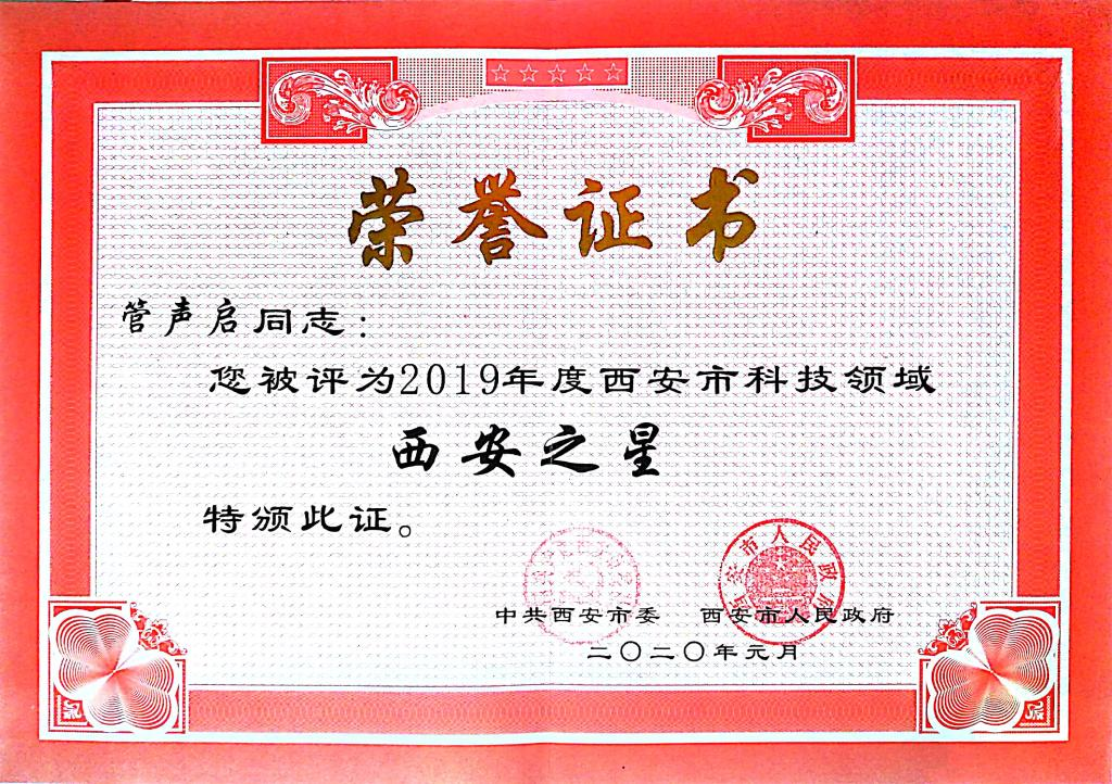 日前,西安市委、市政府研究决定,授予73名同志2019年度西安市科技、文化、卫生等领域“西安之星”荣誉称号,入选者纳入西安市人才库,伟德国际victor1946管声启教授获得科技领域“西安之星”。