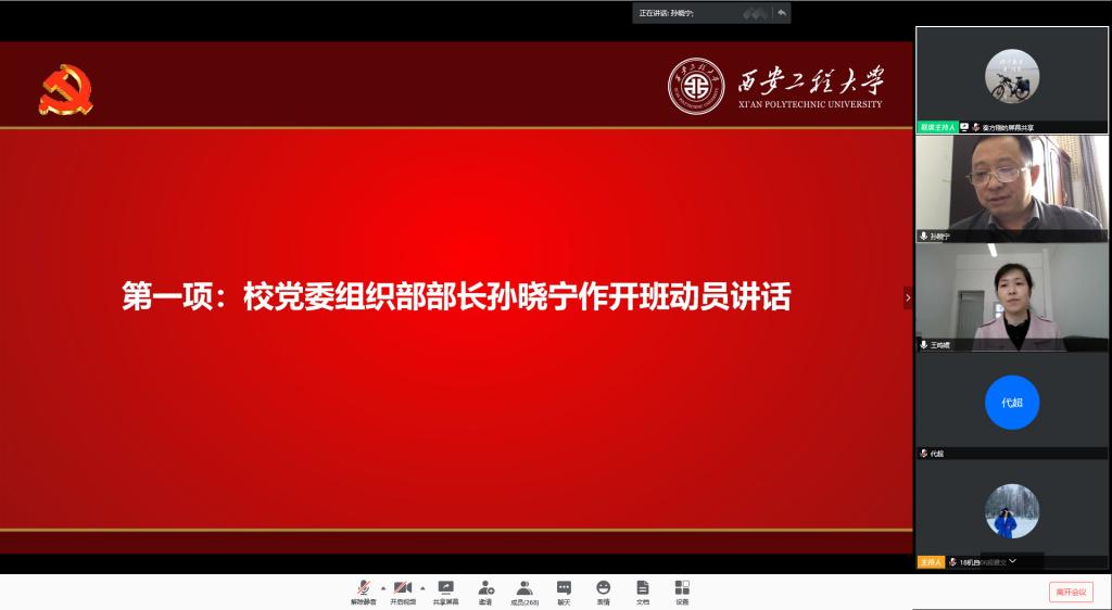 孙晓宁代表公司党校向在疫情防控特殊时期参加线上入党积极分子培训班的各位学员表示祝贺,对培训班学员提出三点意见:一是要端正态度,正确认识参加入党积极分子培训班的重要意义。入党积极分子要不断通过对党史党章、党的理论知识、党内新政策法规等内容的集中学习,深化对党的性质、纲领、指导思想的认识,进一步端正入党动机,规范行为实践。二是要坚定信念,以优异的成绩接受党的考验。入党积极分子要自觉把坚定共产主义理想信念同脚踏实地的学习统一起来,树立正确的人生态度和价值追求,不断增强对学习重要性的认识、增强社会责任感和使命感、增强运用知识解决实际问题的能力,在实践中接受党的考验。三是要严格要求,确保圆满完成学习培训各项任务。入党积极分子要遵守纪律,以高标准、严要求加强自身党性修养和实践锻炼,确保学有所获;公司党委要加强管理,精心做好党课培训班的组织工作,使学员们在理论修养、思想素质和意志品质等方面得到显著提高。